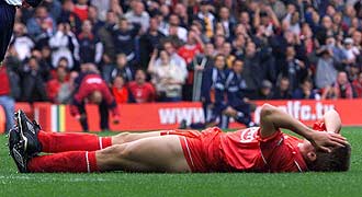 В минувшую субботу во время игры с "Тоттенхэмом" Оуэн вынужден был попросить замену уже на 15-й минуте. Обследование показало, что у него надорвана мышца левой ноги. "Увы, нам придется обходиться без Майкла на протяжении как минимум трех недель", - констатировал главный тренер "Ливерпуля" Жерар Улье, который добавил, что не будет бросать Оуэна в бой до тех пор, пока тот не восстановится на 100 процентов. |