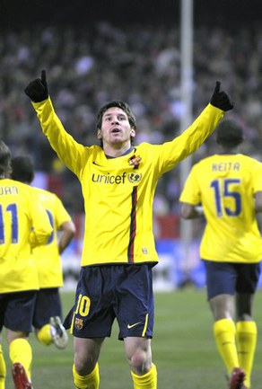 Все изменилось уже в 1/8 финала турнира. "Атлетико" выставил на поединок стартовый состав, "Барса" также бросила в бой основные силы (не было, разве что, Это'О). Начало матча было довольно оживленным, команды то и дело обменивались атаками. На 12-й минуте Месси с помощью Туре обманул оборону "Атлетико" и забил гол в незащищенный угол ворот. Мадридцы немного приуныли, а потом начали хамить. Арбитр часто свистел в сторону хозяев и даже показал им несколько "горчичников". В основном, фолили на Месси, который, впрочем, пару раз упал слишком наигранно. |