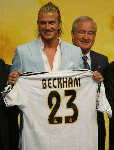 Прошлым летом после представления Роналдо в первый день было продано 2 000 футболок с его именем. "Показатели" Зинедина Зидана еще скромнее - 300 футболок. Президент "Реала" Флорентино Перес надеется, что трансфер Бекхэма из "Манчестер Юнайтед" окупится только продажей футбольной атрибутики, и особые надежды он возлагает на азиатский рынок, где популярность Дэвида очень высока. |