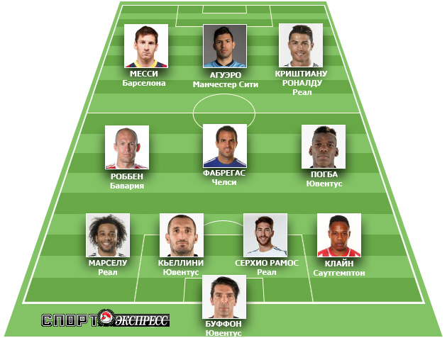 Вариант "СЭ" выглядит так: Буффон ("Ювентус"); Клайн ("Саутгемптон"), Серхио Рамос, Кьеллини ("Ювентус"), Марселу ("Реал"); Погба ("Ювентус"), Фабрегас, Роббен; Криштиану Роналду, Агуэро, Месси.