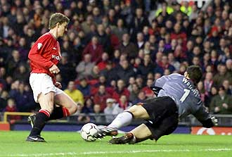 Лидер первенства, не напрягаясь, переиграл высоко взлетевший в этом сезоне "Ипсвич". Оле-Гуннар Сульшер за двенадцать минут первого тайма двумя точными ударами решил исход встречи. |