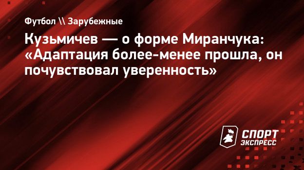 Кузьмичев — о форме Миранчука: «Адаптация более-менее прошла, он почувствовал уверенность»