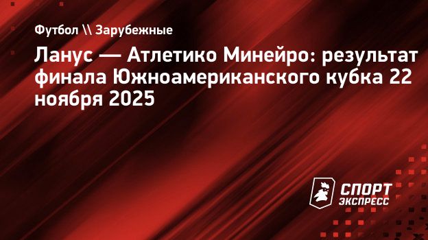 Аргентинский «Ланус» победил бразильский «Атлетико Минейро» в финальном матче Южноамериканского кубка-2025 — 0:0, 5:4 пенальти. Игра прошла в Асунсьоне на стадионе «Дефенсорес дель Чако».