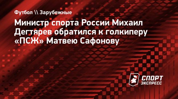 Министр спорта России Михаил Дегтярев отреагировал на достижение голкипера «ПСЖ» Матвея Сафонова в финале Межконтинентального кубка.