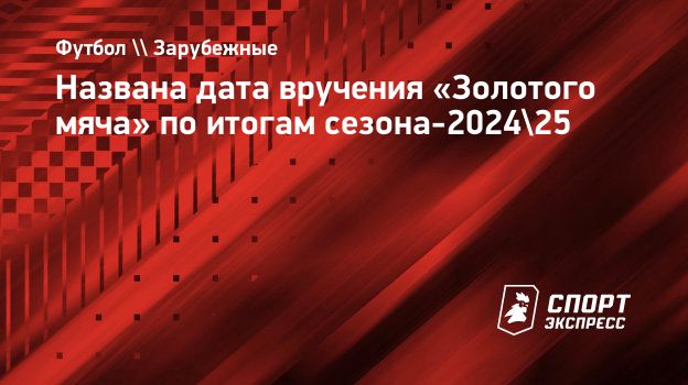 Названа дата вручения «Золотого мяча» по итогам сезона-2024/25