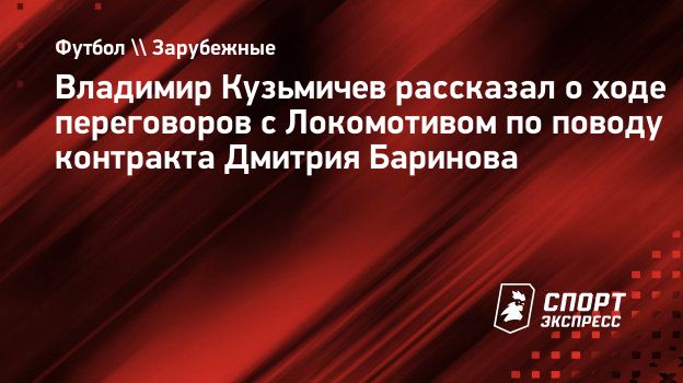 Владимир Кузьмичев, представитель полузащитника «Локомотива» Дмитрия Баринова, прокомментировал «СЭ» ход переговоров по новому контракту с полузащитником Дмитрием Бариновым.