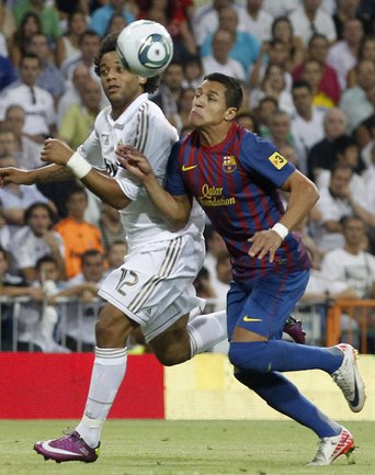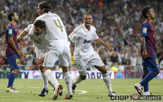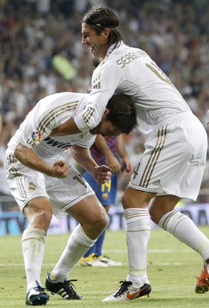 Футбол. Суперкубок Испании. Первый матч. "Реал" – "Барселона" – 2:2 (1:2). Голы: Езил, 13 (1:0). Вилья, 36 (1:1). Месси, 45 (1:2). Хаби Алонсо, 54 (2:2). Ответная встреча состоится в Барселоне 18 августа.Фото REUTERS