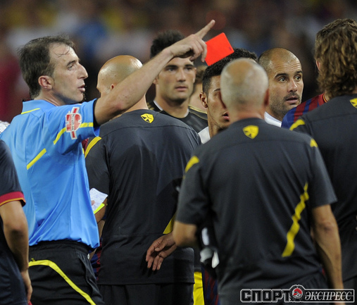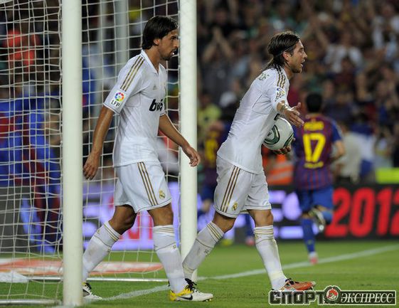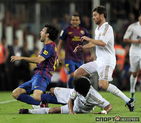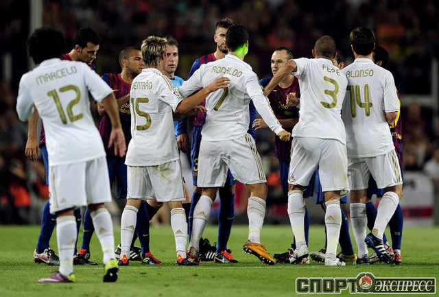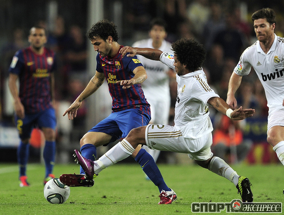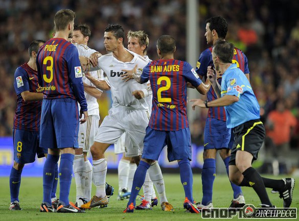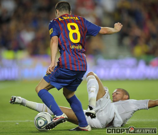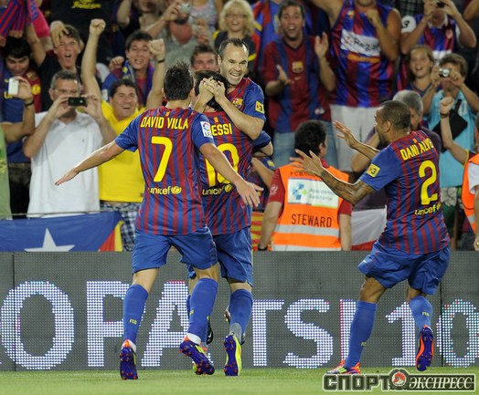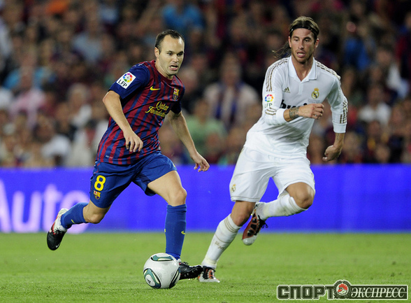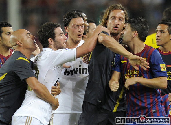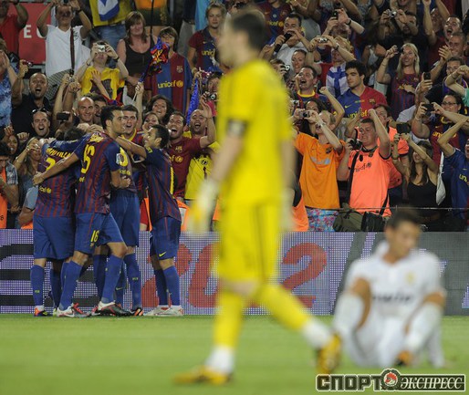 Футбол. Барселона. Суперкубок Испании. Ответный матч. "Барселона" – "Реал" (Мадрид) – 3:2 (2:1). Голы: Иньеста, 15 (1:0). Криштиану Роналду, 21 (1:1). Месси, 45 (2:1). Бензема, 82 (2:2). Месси, 88 (3:2). Удаления: Марселу (грубая игра), Езил (неспортивное поведение), Вилья ( неспортивное поведение). Первый матч – 2:2. Фото AFP