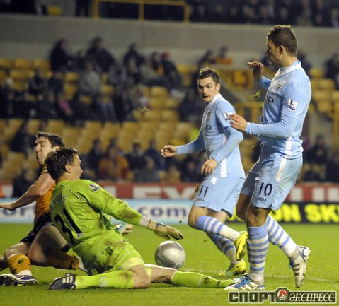 Футбол. Кубок английской лиги. 1/8 финала. "Вулверхэмптон" - "Манчестер Сити" - 2:5 (1:3). Голы: Милияш, 19 (1:0). Джонсон, 37 (1:1). Насри, 39 (1:2). Джеко, 40 (1:3). Де Врис, 50 - в свои ворота (1:4). Джеко, 64 (1:5). О`Хара, 65 (2:5). "Стоук Сити" - "Ливерпуль" - 1:2 (1:0). Голы: Джонс, 44 (1:0). Суарес, 54 (1:1). Суарес, 85 (1:2). "Эвертон" - "Челси" - 1:2 доп. вр. (0:1, 1:0, 0:1). Голы: Калу, 38 (0:1). Саа, 83 (1:1). Старридж, 116 (1:2). Нереализованные пенальти: Анелька(Ч), 17, Бэйнс(Э), 61. Удаления: Тернбулл (Ч), 58. Дренте (Э), 107. Российский полузащитник хозяев Динияр Билялетдинов был заменен на 81-й минуте. Фото AFP