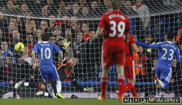 Футбол. Чемпионат Англии. Премьер-лига. 13-й тур. "Челси" - "Ливерпуль" - 1:2 (0:1). Гол: Макси Родригес, 34 (0:1). Старридж, 55 (1:1). Г. Джонсон, 87 (1:2). Фото AFP
