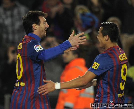 Футбол. Чемпионат Испании. Примера. 17-й тур. "Барселона" - "Райо Вальекано" - 4:0 (3:0). Голы: Санчес, 29 (1:0). Санчес, 41 (2:0). Вилья, 43 (3:0). Месси, 49 (4:0). Фото AFP