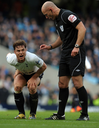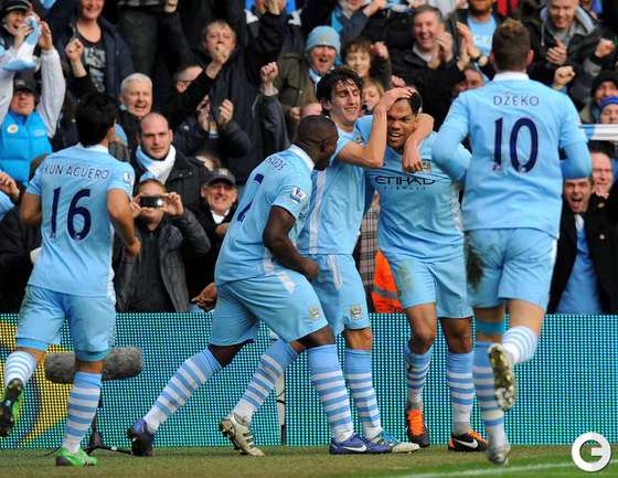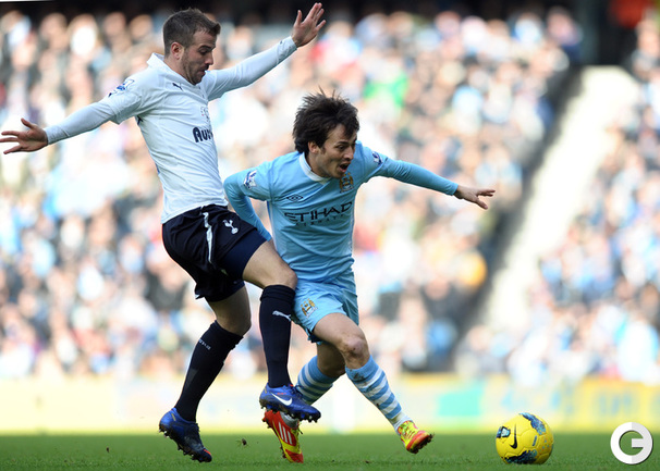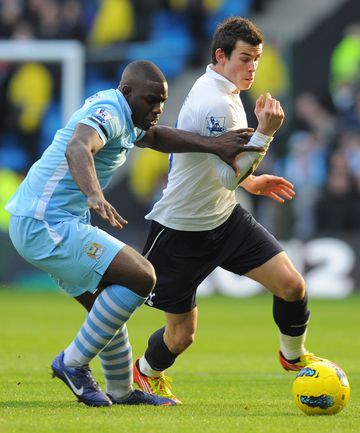 Чемпионат Англии. Премьер-лига. 22-й тур. "Манчестер Сити" - "Тоттенхэм" - 3:2 (0:0). Голы: Насри, 56 (1:0). Лескотт, 59 (2:0). Дефо, 60 (2:1). Бэйл, 65 (2:2). Балотелли, 90+5 - с пенальти (3:2). Форвард "Тоттенхэма" Роман Павлюченко остался в запасе. Фото AFP