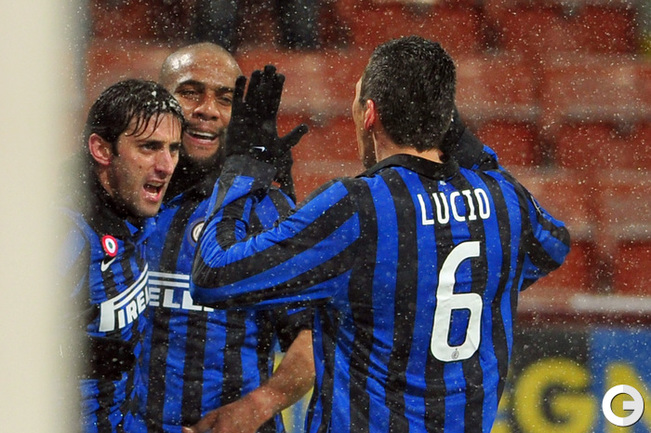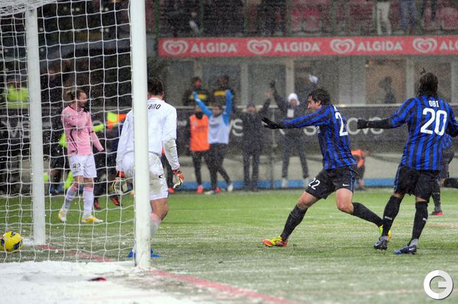 Футбол. Чемпионат Италии. Серия А. 21-й тур. "Интер" - "Палермо" - 4:4 (1:1). Голы: Мантовани, 16 (0:1). Милито, 22 (1:1). Микколи, 52 (1:2). Милито, 55 - с пенальти (2:2). Милито, 61 (3:2). Микколи, 66 (3:3). Милито, 69 (4:3). Микколи, 84 (4:4). "Лацио" - "Милан" - 2:0 (0:0). Голы: Эрнанес, 76 (1:0). Рокки, 85 (2:0). Фото AFP