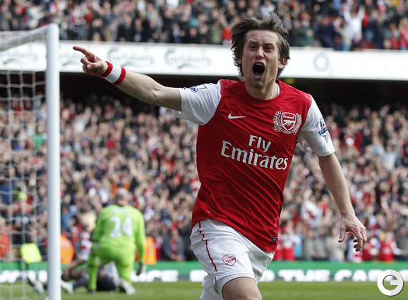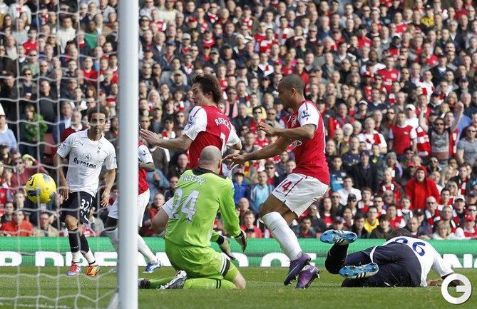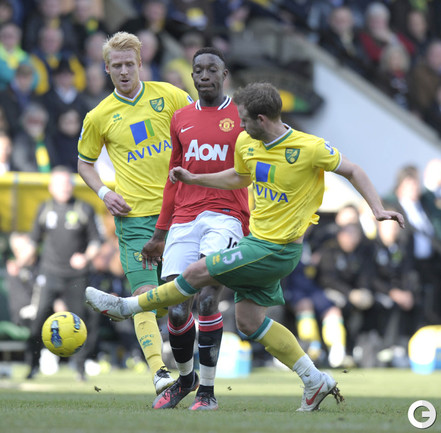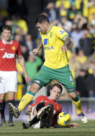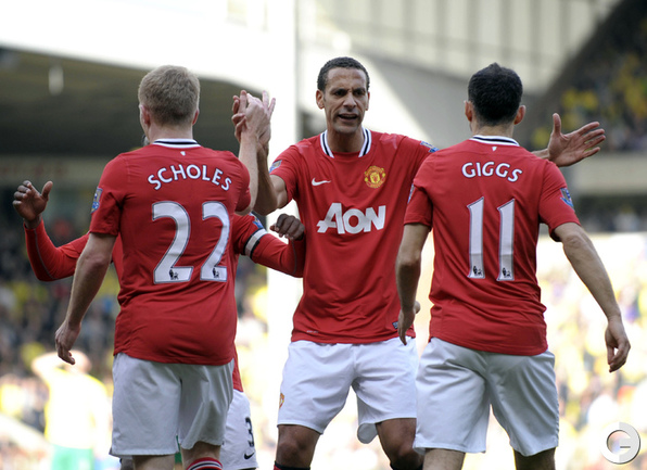 Футбол. Чемпионат Англии. Премьер-лига. 26-й тур. "Норвич" - "Манчестер Юнайтед" - 1:2 (0:1). Голы: Скоулз, 7 (0:1). Холт, 83 (1:1). Гиггз, 90 (1:2).. Игра с "Норвичем" стала 900 для хавбека "Манчестер Юнайтед" Райна Гиггза в форме английского гранда. "Арсенал" - "Тоттенхэм" - 5:2 (2:2). Голы: Саа, 4 (0:1). Адебайор, 34 - с пенальти (0:2). Санья, 41 (1:2). Ван Перси, 43 (2:2). Росицки, 51 (3:2). Уолкотт, 65 (4:2). Уолкотт, 68 (5:2). "Арсенал" разгромил "Тоттенхэм", уступая в счете два мяча. Фото AFP