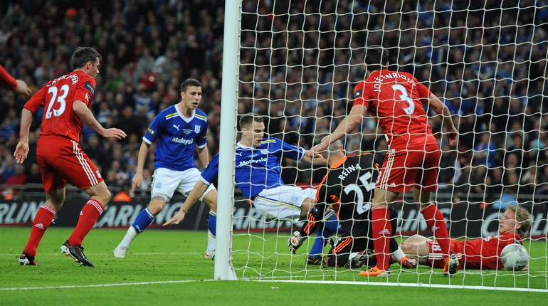 Лондон. Кубок английской лиги. Финал. "Кардифф" - "Ливерпуль" - 2:2 (1:0, 0:1, 1:1) пенальти - 2:3. Голы: Мэсон, 19 (1:0). Шкртел, 60 (1:1). Кайт, 108 (1:2). Тернер, 118 (2:2). Фото AFP