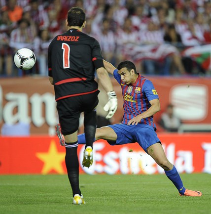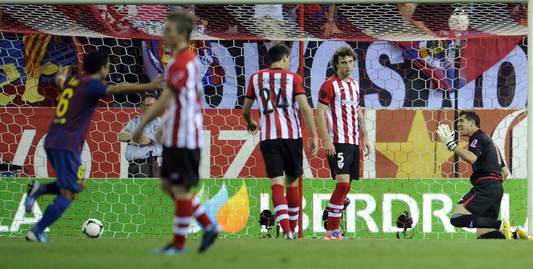 Футбол. Мадрид. Кубок Испании. Финал. "Атлетик" - "Барселона" - 0:3 (0:3). Голы: Педро, 3 (0:1). Месси, 20 (0:2). Педро, 25 (0:3). Благодаря победе "Барселоны" в финале Кубка Испании над "Атлетиком" казанский "Рубин" получит возможность стартовать в Лиге Европы не с 4-го отборочного раунда, а сразу с группового этапа. Таким образом, определились семь клубов, которые попали в групповой этап Лиги Европы напрямую. Помимо "Рубина" в это число вошли: "Атлетико" (Испания), "Тоттенхэм" (Англия), "Байер" (Германия), "Наполи" (Италия), "Лион" (Франция) и "Академика" (Португалия). Фото AFP