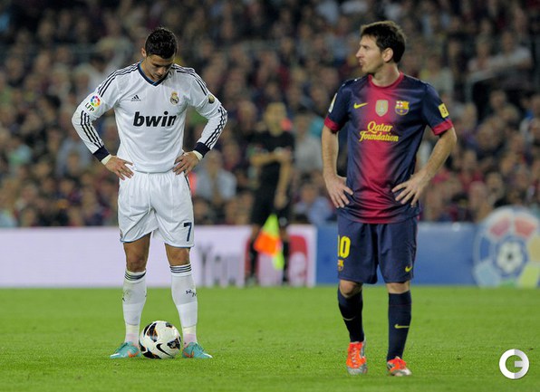 Футбол. Чемпионат Испании. Примера. 7-й тур. "Барселона" - "Реал" - 2:2 (1:1). Голы: Криштиану Роналду, 23 (0:1). Месси, 30 (1:1). Месси, 61 (2:1). Криштиану Роналду, 66 (2:2). Фото AFP