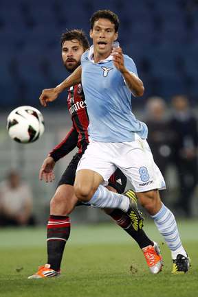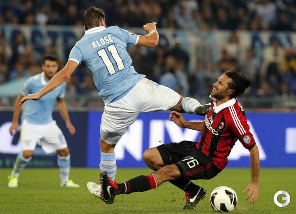 Чемпионат Италии. Серия А. 8-й тур. "Лацио" - "Милан" - 3:2 (2:0). Голы: Эрнанес, 25 (1:0). Кандрева, 41 (2:0). Клозе, 49 (3:0). Де Йонг, 61 (3:1). Эль-Шаарави, 79 (3:2). Соперник "Зенита" по групповому турниру Лиги чемпионов "Милан" потерпел поражение в выездном матче с "Лацио". Хозяева уже к началу второго тайма вели с разницей в три мяча, а в оставшееся время миланцы смогли отличиться лишь дважды. Фото REUTERS