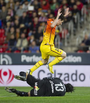 Чемпионат Испании. Примера. 11-й тур. "Мальорка" - "Барселона" - 2:4 (0:3). Голы: Хави, 28 (0:1). Месси, 44 (0:2). Тельо, 45 (0:3). Перейра, 55 (1:3). Виктор Касадесус, 58 - с пенальти (2:3). Месси, 70 (2:4). Сделав дубль в матче, Лионель Месси забил 76-й гол в сезоне, опередив по этому показателю достижение легендарного бразильца Пеле. Фото AFP