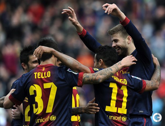 Чемпионат Испании. Примера. 23-й тур. "Барселона" - "Хетафе" - 6:1 (2:0). Голы: Санчес, 6 (1:0). Месси, 13 (2:0). Вилья, 58 (3:0). Тельо, 79 (4:0). Васкес, 83 (4:1). Иньеста, 90 (5:1). Пике, 90+2 (6:1). Футболисты "Барселоны" перед матчем поздравили болельщиков клуба с китайским Новым годом. Фото AFP