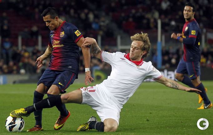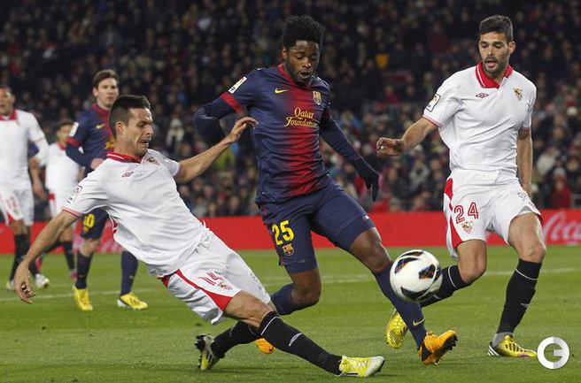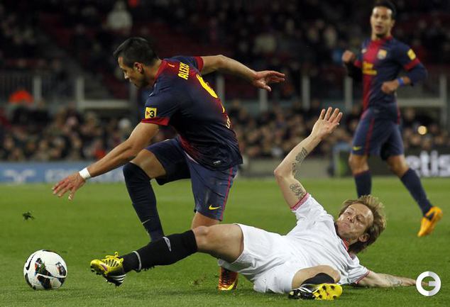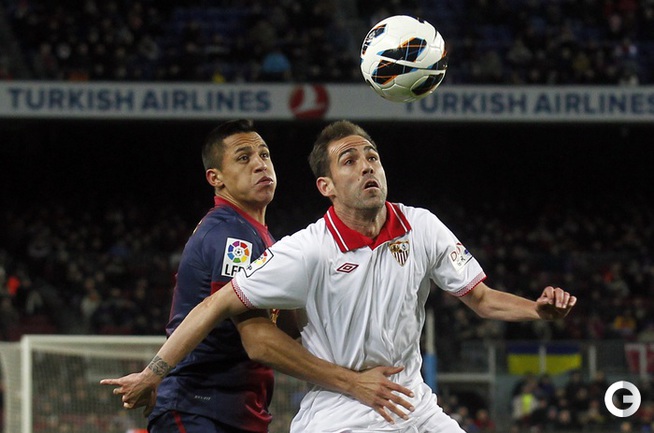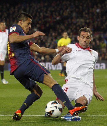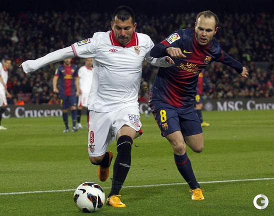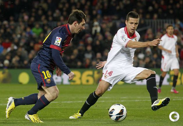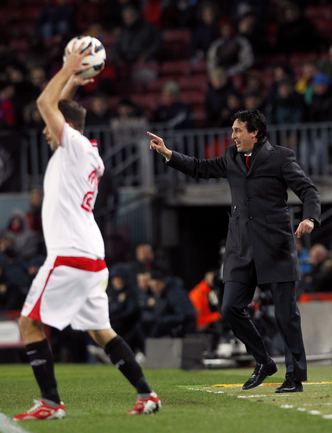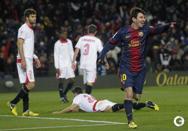 Чемпионат Испании. Примера. 25-й тур. "Барселона" - "Севилья" - 2:1 (0:1). Голы: Ботия, 42 (0:1). Вилья, 52 (1:1). Месси, 60 (2:1). В матче 25-го тура чемпионата Испании "Барселона" одержала волевую победу над "Севильей" - 2:1. Унаи Эмери не выиграл ни в одном из 14 предыдущих поединков с сине-гранатовыми (при семи поражениях на "Ноу Камп") во главе "Альмерии", "Валенсии" и московского "Спартака". Победный гол забил Лионель Месси. Фото REUTERS