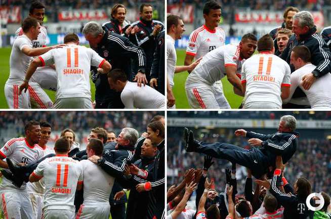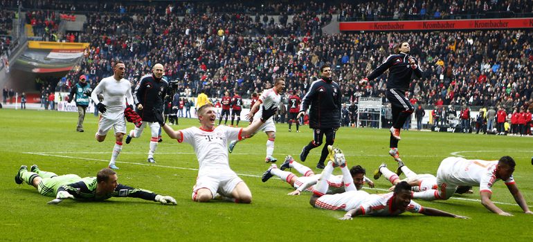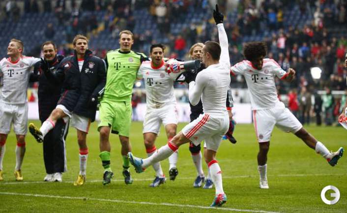 Чемпионат Германии. Бундеслига. 28-й тур. "Айнтрахт" Ф – "Бавария" – 0:1 (0:0). "Бавария" обыграла "Айнтрахт" в гостевом матче бундеслиги и оформила чемпионское звание за шесть туров до конца сезона. Для мюнхенцев это 23-й титул в истории. Фото REUTERS