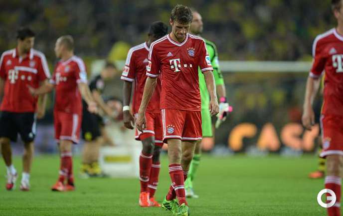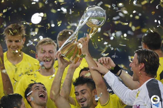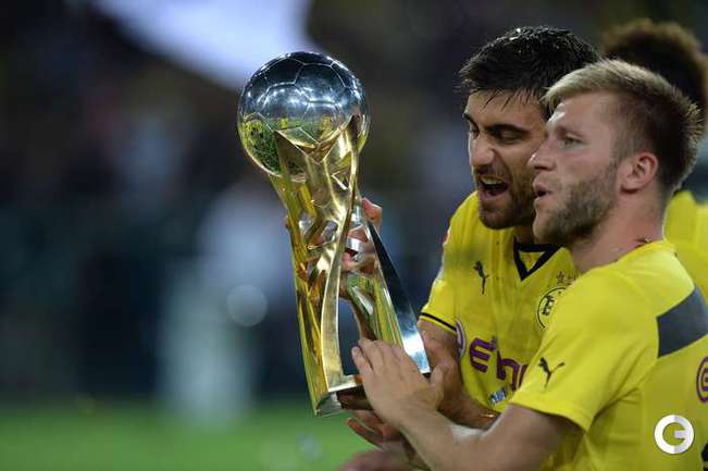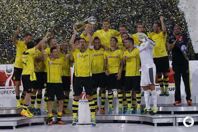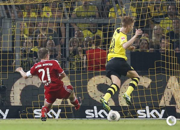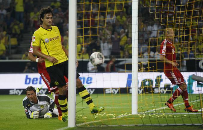 Футбол. Дортмунд. Суперкубок Германии. "Боруссия" (Дортмунд) – "Бавария" (Мюнхен) – 4:2 (1:0). Голы: Ройс, 5 (1:0). Роббен, 54 (1:1). Ван Бюйтен, 56 – в свои ворота (2:1). Гюндоган, 57 (3:1). Роббен, 65 (3:2). Ройс, 87 (4:2).Фото REUTERS и AFP