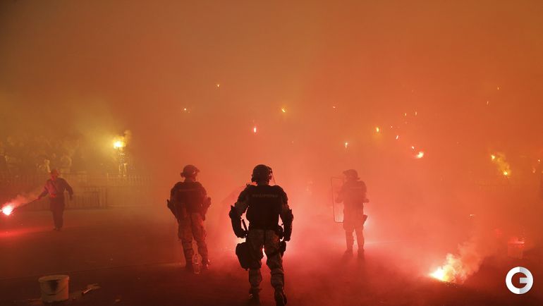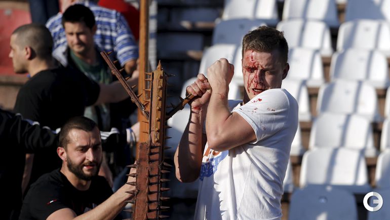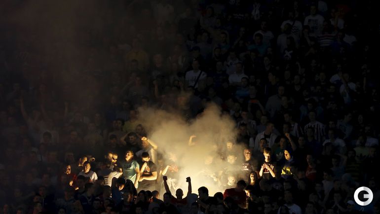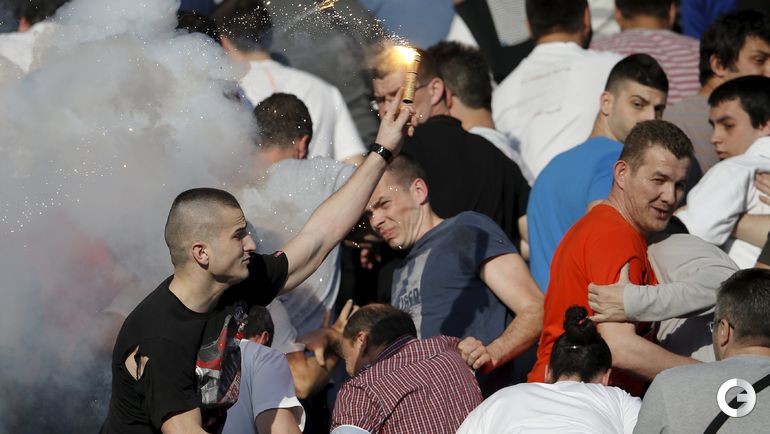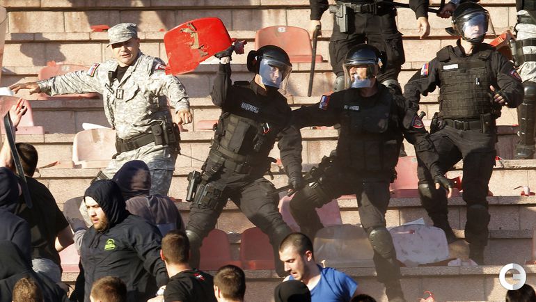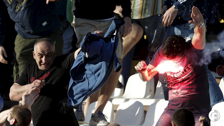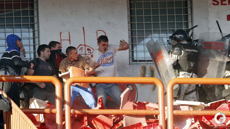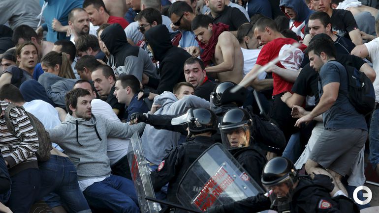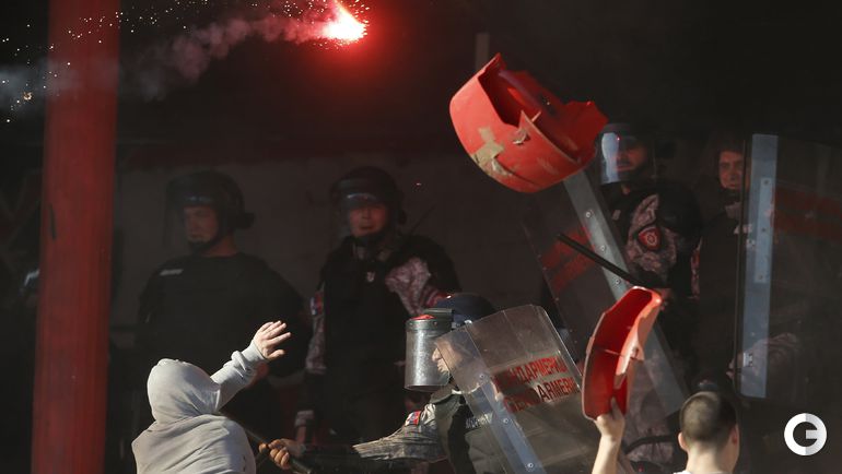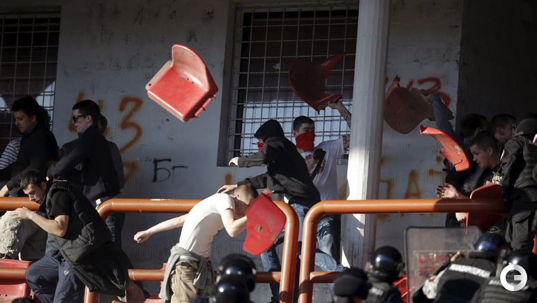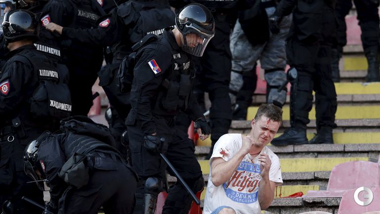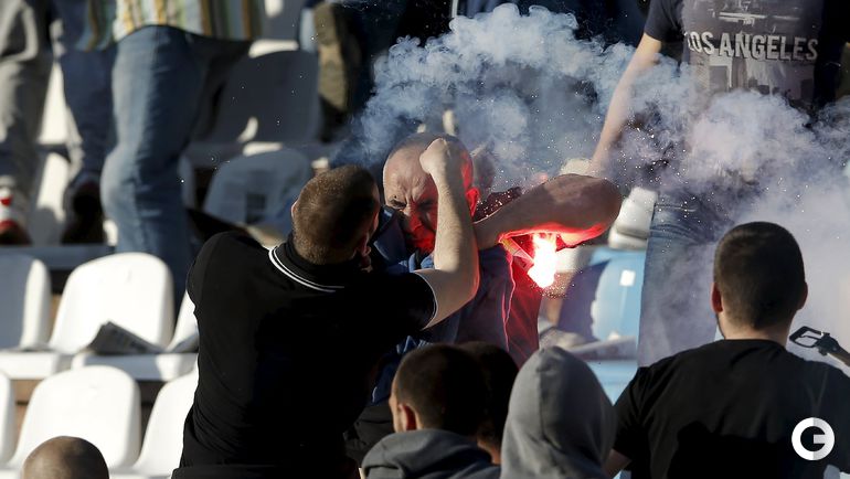 148-е белградское дерби между "Црвеной Звездой" и "Партизаном" омрачилось массовыми потасовками на восточной трибуне стадиона "Райко Митич".