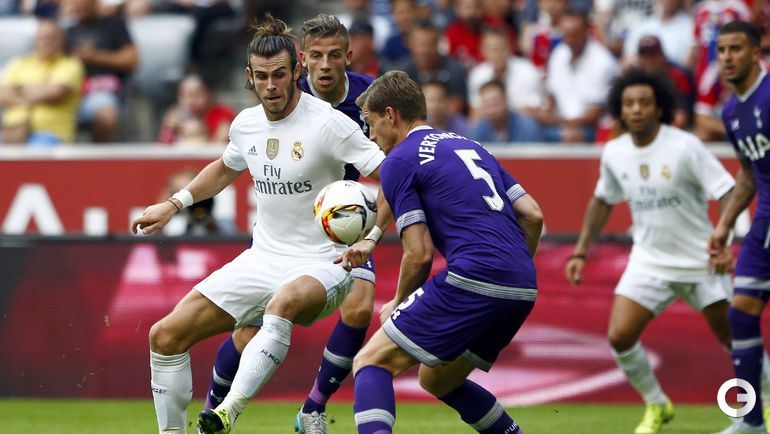 "Реал" в матче 1/2 финала Кубка "Ауди" переиграл "Тоттенхэм" – 2:0. Игра прошла на стадионе "Альянц-Арена" в Мюнхене. Российский полузащитник мадридцев Денис Черышев вышел на замену на 60-й минуте встречи. Счет на 36-й минуте открыл нападающий Хамес Родригес. Второй гол забил полузащитник Гарет Бэйл. "Реал" вышел в финал, где встретится с победителем матча "Бавария" – "Милан". Фото AFP и REUTERS
