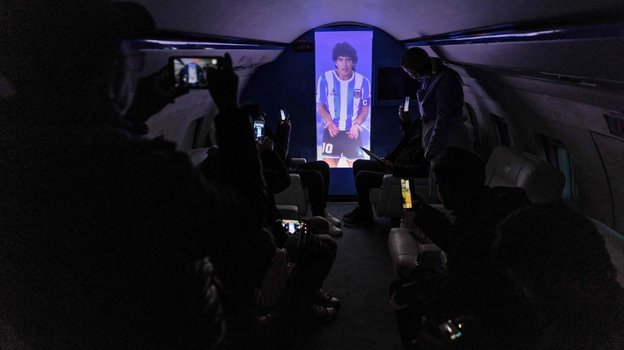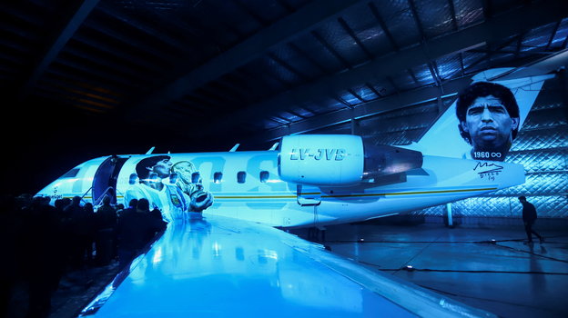 В аэропорту Буэнос-Айреса дочери легендарного аргентинского футболиста Диего Марадоны представили самолет-музей Таngo D10S. На его корпусе нанесено знаменитое изображение футболиста с Кубком мира, который национальная команда выиграла в 1986 году на чемпионате мира в Мексике. Внутри лайнера — футболки, личные вещи звезды, стенды с аудио и видео материалами. Самолет-музей будет путешествовать по миру, а конечным пунктом его назначения станет чемпионат мира в Катаре в ноябре этого года.