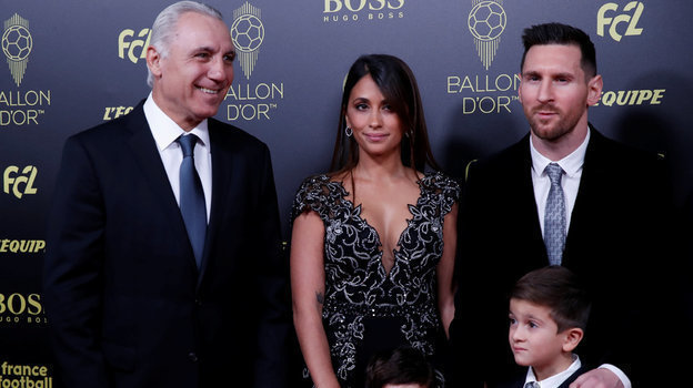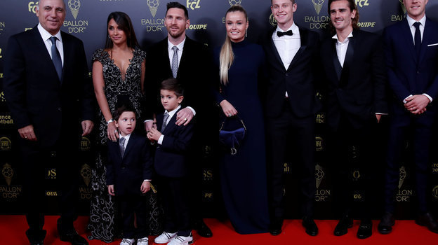 Лионель Месси и другие звезды футбола на красной ковровой дорожке во время вручения «Золотого мяча» в Париже.