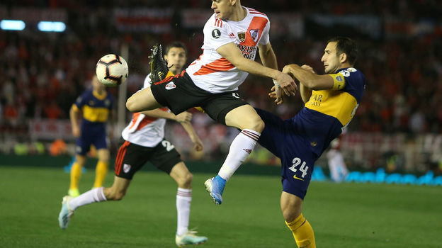 «Ривер Плейт» переиграл «Бока Хуниорс» в первом матче 1/2 финала Кубка Либертадорес со счетом 2:0. Перед стартовым свистком на стадионе «Монументаль» состоялось грандизное пиротехническое шоу.