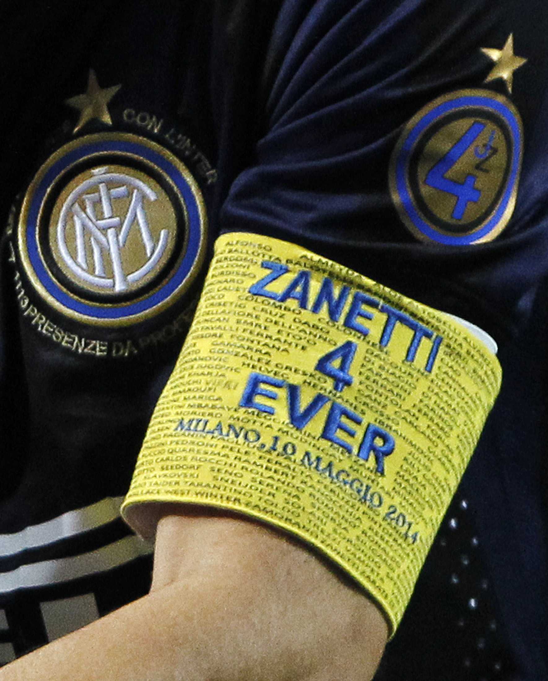 Многолетний капитан "Интера" Хавьер Дзанетти вышел на поле с уникальной капитанской повязкой. На ней были перечислены фамилии всех игроков "нерадзурри", с которыми аргентинец играл за 18 лет в клубе. Также повязку украсила надпись "Дзанетти навсегда", в которой был обыгран игровой номер футболиста.