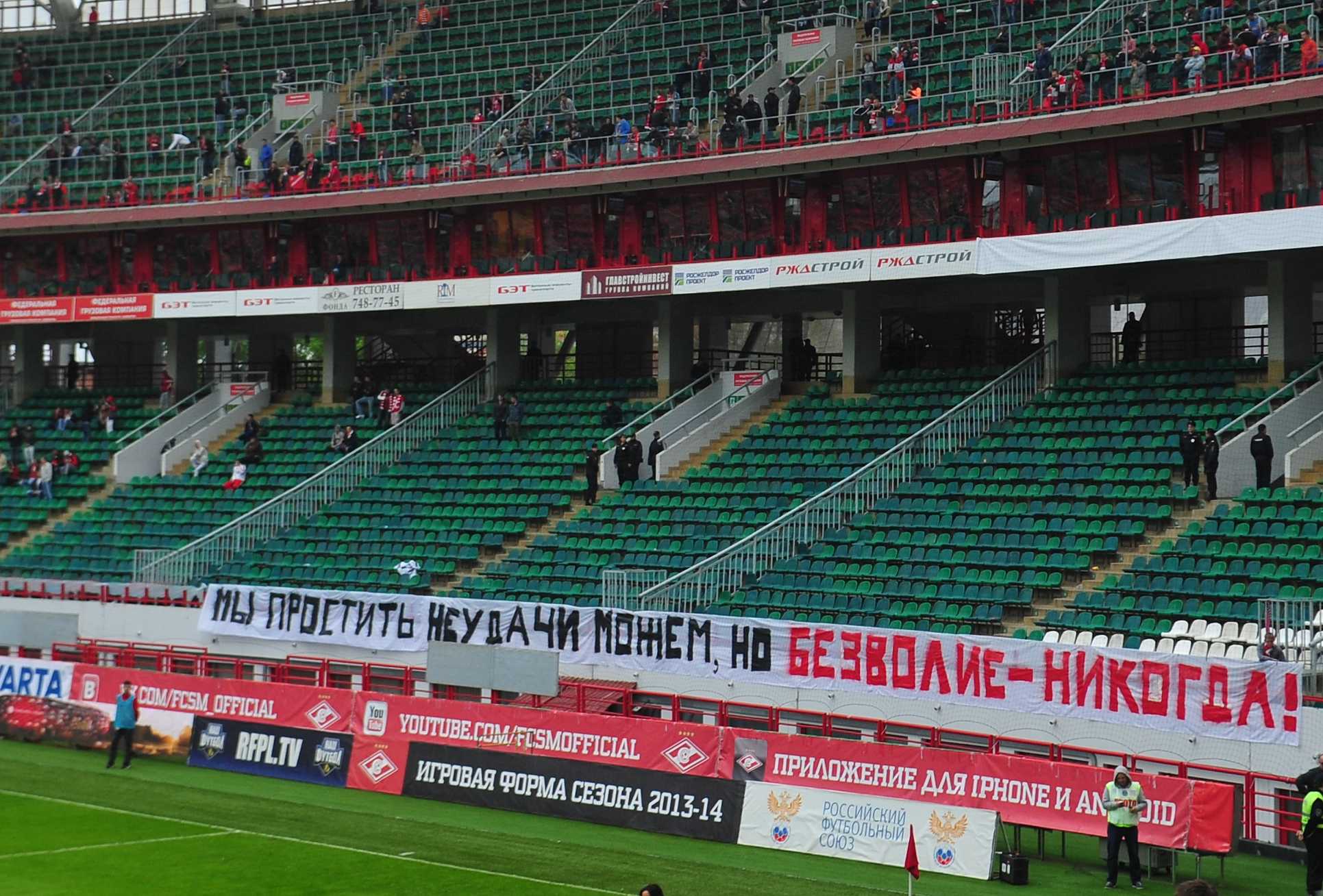 Фанаты "Спартака", как и обещали, покинули трибуны стадиона "Локомотив" после 15-й минуты матча 29-го тура премьер-лиги против "Амкара".
