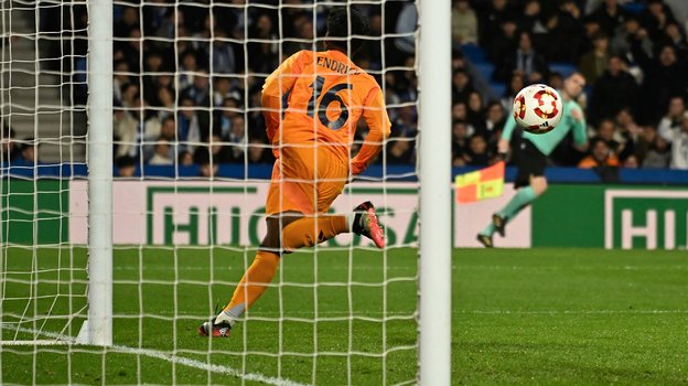 Нас было трудно чем-то удивить после эпичного сражения «Барселоны» и «Атлетико» (4:4). Но Эндрику, которого Карло Анчелотти крайне дозированно выпускает на поле, это удалось. Бразильский вундеркинд после паса Беллингема забил победный гол, который стал для него четвертым в Кубке Испании. Но поражают другие цифры: в момент удара юноши его игровое время в сезоне исчислялось 425 минутами. Делим его на шесть забитых за сезон мячей и видим: на результативный удар Эндрику требуется в среднем 71 минута! Причем в начале второго тайма — сразу после сейва Лунина — форвард едва не улучшил свою статистику, но «Реал Сосьедад» спасла перекладина. Баски проиграли — возможно, им не хватило забившего на выходных прекрасный гол Захаряна. У Арсена небольшое повреждение, поэтому Иманол Альгуасиль не стал рисковать его здоровьем. Ответный полуфинал пройдет в Мадриде 1 апреля.