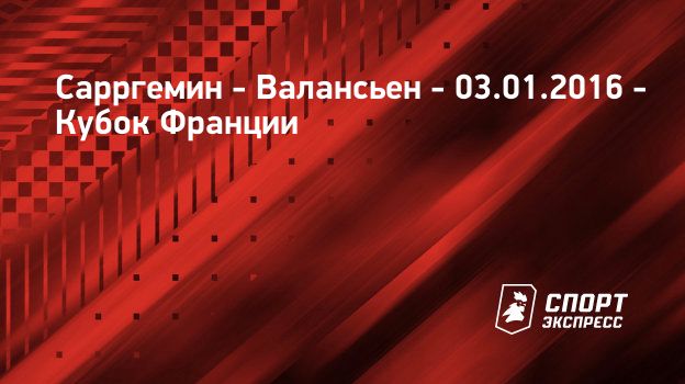 "СЭ" рад приветствовать всех любителей футбола! Здесь вас ждет онлайн-трансляция матча Сарргемин (Саргемин) – Валансьен (Валансьен). Кубок Франции, 1/32 финала Матч пройдет 3 января 2016 года на стадионе Stade de la Blies (Саргемин, Франция). Начало - в 16:30 по московскому времени.