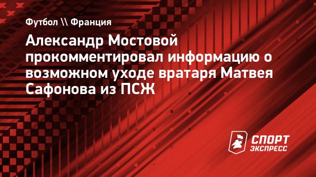 Бывший полузащитник сборных СССР и России Александр Мостовой в разговоре с «СЭ» отреагировал на информацию о возможном уходе вратаря Матвея Сафонова из «ПСЖ».