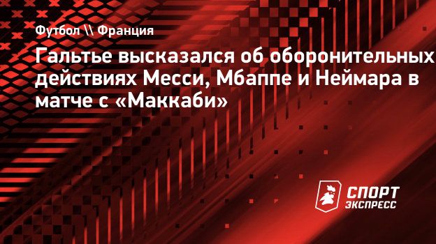 Гальтье высказался об оборонительных действиях Месси, Мбаппе и Неймара в матче с «Маккаби»