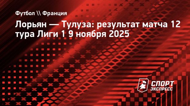 «Тулуза» на выезде сыграла вничью с «Лорьяном» в матче 12-го тура чемпионата Франции — 1:1.