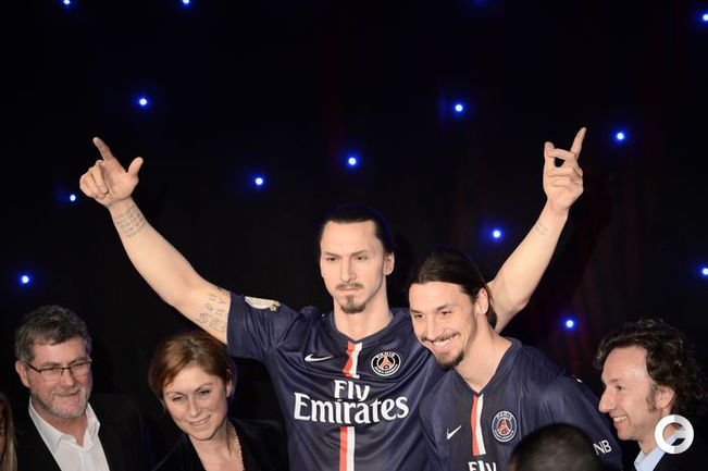 Нападающий "ПСЖ" Златан Ибрагимович посетил парижский музей восковых фигур, где был представлен его восковой двойник. Фото AFP