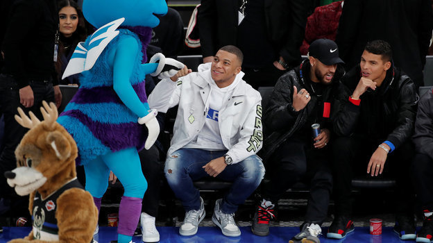 Игроки футбольного «ПСЖ» Неймар, Кильян Мбаппе, Тиагу Силва, Марко Верратти, Мауро Икарди посетили матч чемпионата НБА «Шарлотт» - «Милуоки».