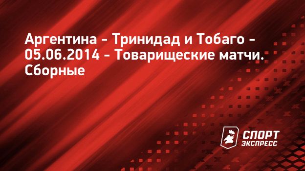 "СЭ" рад приветствовать всех любителей футбола! Здесь вас ждет онлайн-трансляция матча Аргентина – Тринидад и Тобаго . Товарищеские матчи. Сборные, Товарищеский матч Матч пройдет 5 июня 2014 года на стадионе Антонио Веспучио Либерти (Буэнос-Айрес, Аргентина). Начало - в 02:15 по московскому времени.