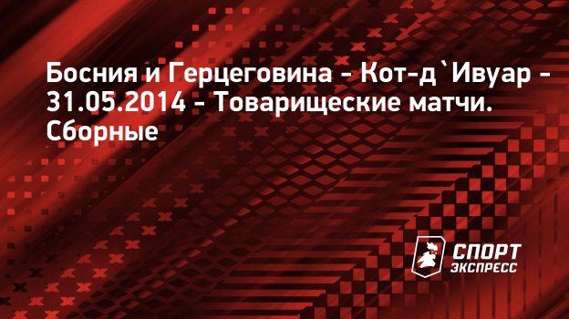 "СЭ" рад приветствовать всех любителей футбола! Здесь вас ждет онлайн-трансляция матча Босния и Герцеговина – Кот-д`Ивуар . Товарищеские матчи. Сборные, Товарищеский матч Матч пройдет 31 мая 2014 года на стадионе Edward Jones Dome (Сент-Луис, США). Начало - в 04:30 по московскому времени.