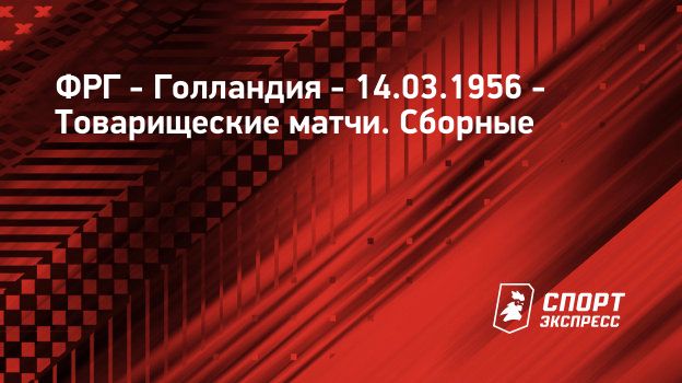 "СЭ" рад приветствовать всех любителей футбола! Здесь вас ждет онлайн-трансляция матча ФРГ – Голландия . Товарищеские матчи. Сборные, Товарищеский матч Матч пройдет 14 марта 1956 года.