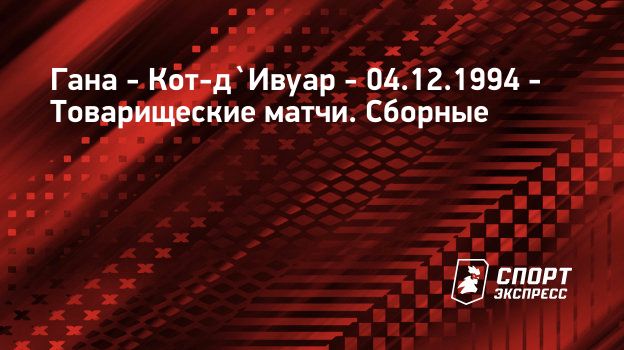 "СЭ" рад приветствовать всех любителей футбола! Здесь вас ждет онлайн-трансляция матча Гана – Кот-д`Ивуар . Товарищеские матчи. Сборные, Товарищеский матч Матч пройдет 4 декабря 1994 года.