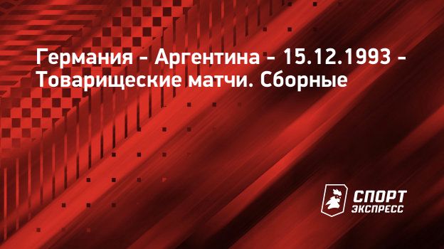 "СЭ" рад приветствовать всех любителей футбола! Здесь вас ждет онлайн-трансляция матча Германия – Аргентина . Товарищеские матчи. Сборные, Товарищеский матч Матч пройдет 15 декабря 1993 года.
