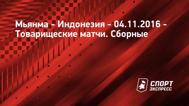 "СЭ" рад приветствовать всех любителей футбола! Здесь вас ждет онлайн-трансляция матча Мьянма – Индонезия . Товарищеские матчи. Сборные, Товарищеский матч Матч пройдет 4 ноября 2016 года. Начало - в 13:30 по московскому времени.