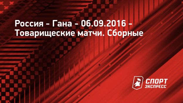 "СЭ" рад приветствовать всех любителей футбола! Здесь вас ждет онлайн-трансляция матча Россия – Гана . Товарищеские матчи. Сборные, Товарищеский матч Матч пройдет 6 сентября 2016 года на стадионе РЖД Арена (Москва, Россия). Начало - в 19:00 по московскому времени.