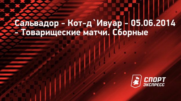"СЭ" рад приветствовать всех любителей футбола! Здесь вас ждет онлайн-трансляция матча Сальвадор – Кот-д`Ивуар . Товарищеские матчи. Сборные, Товарищеский матч Матч пройдет 5 июня 2014 года на стадионе Toyota Stadium (Фриско, США). Начало - в 05:00 по московскому времени.