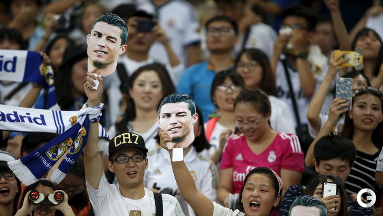 На тренировках мадридского "Реала" и итальянского "Милана" в Шанхае. Фото AFP и REUTERS